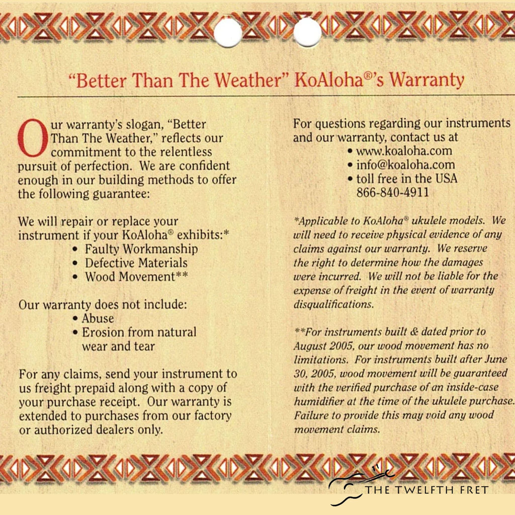 While KoAloha's ukuleles have been through a series of improvements, they still ring with the same signature KoAloha sound. As a tone wood, Koa produces a nice harmony of warmth and brightness. The tonal balance of these instruments is a fit for all types of music. From finger picking to strumming, from classical to jazz, the Hawaiian Koa series will play and sound great.