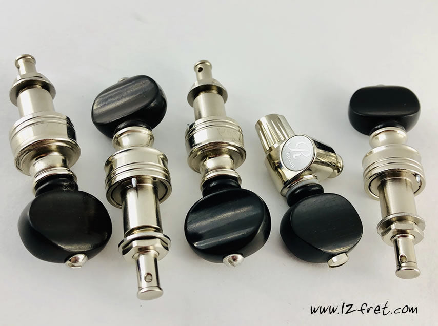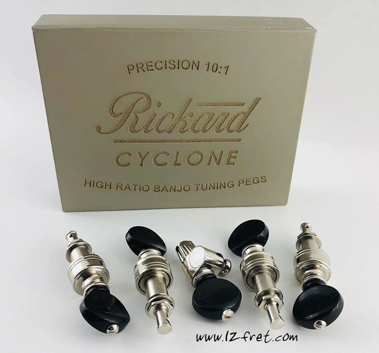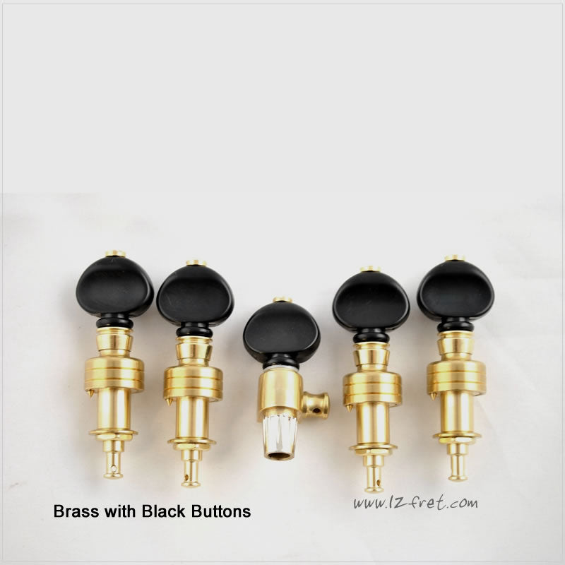 Rickard Cyclone High Ratio Banjo Tuners - Brass with Black Buttons - Set of 5