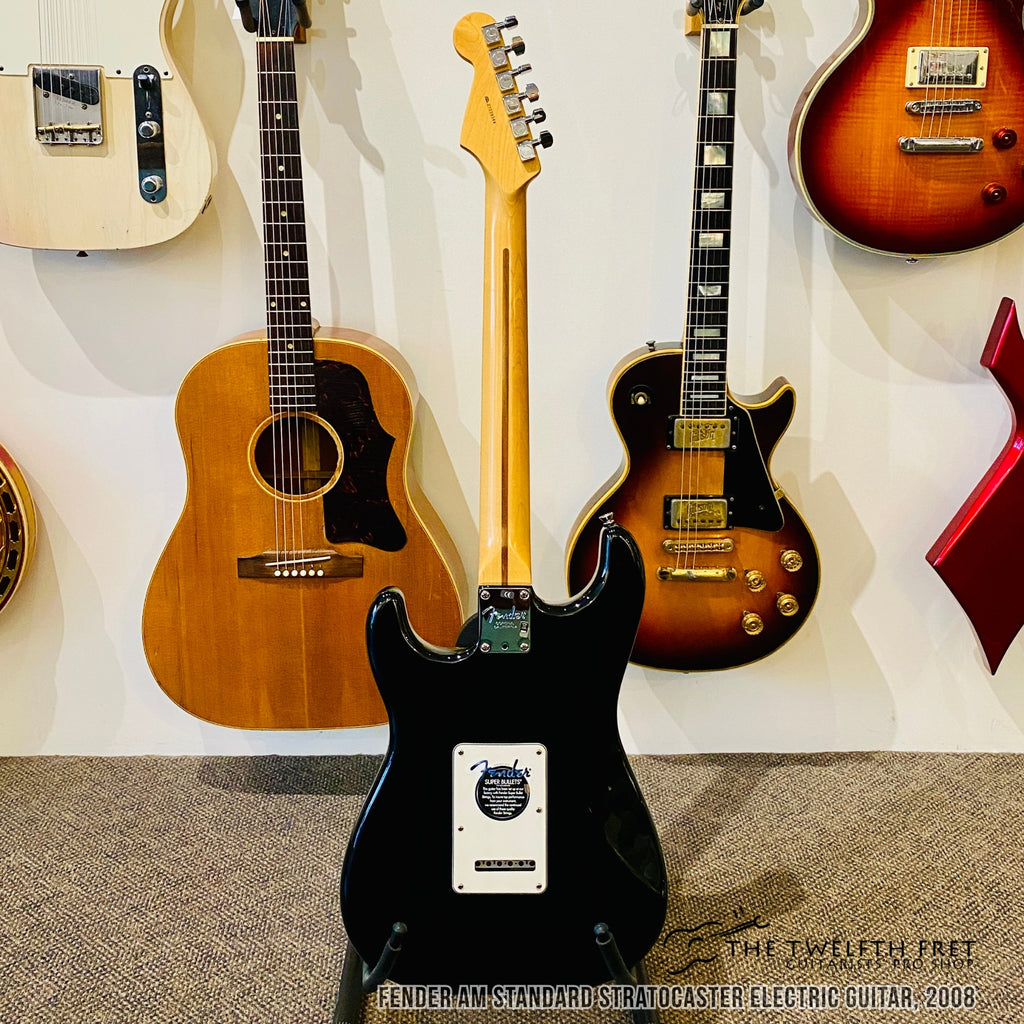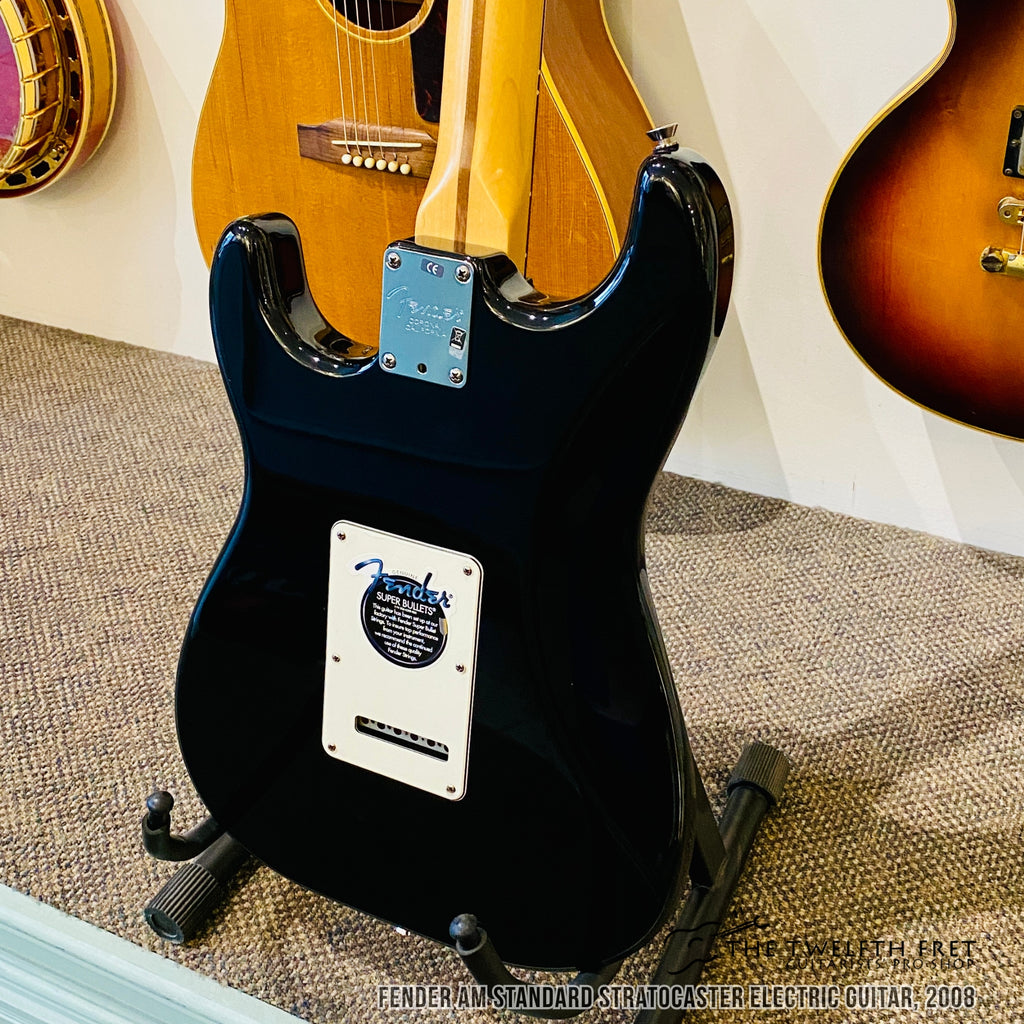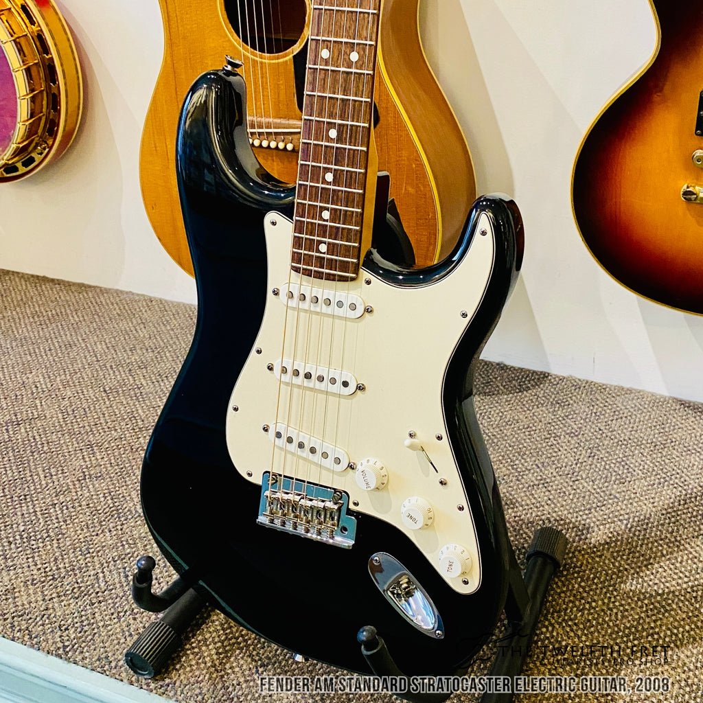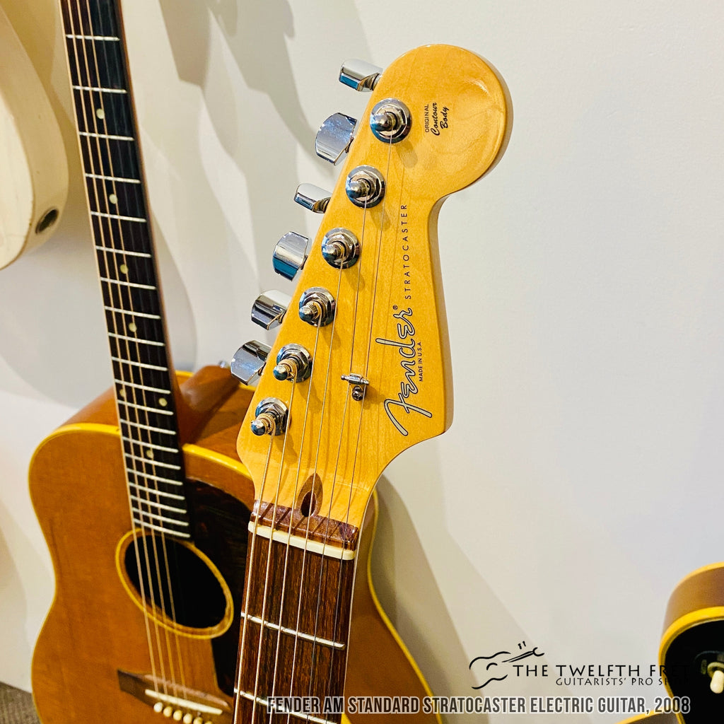 Here is a Fender AM Standard Stratocaster electric guitar from 2008. This model was the US made workhorse of Stratocasters from this era.