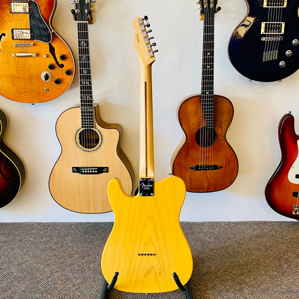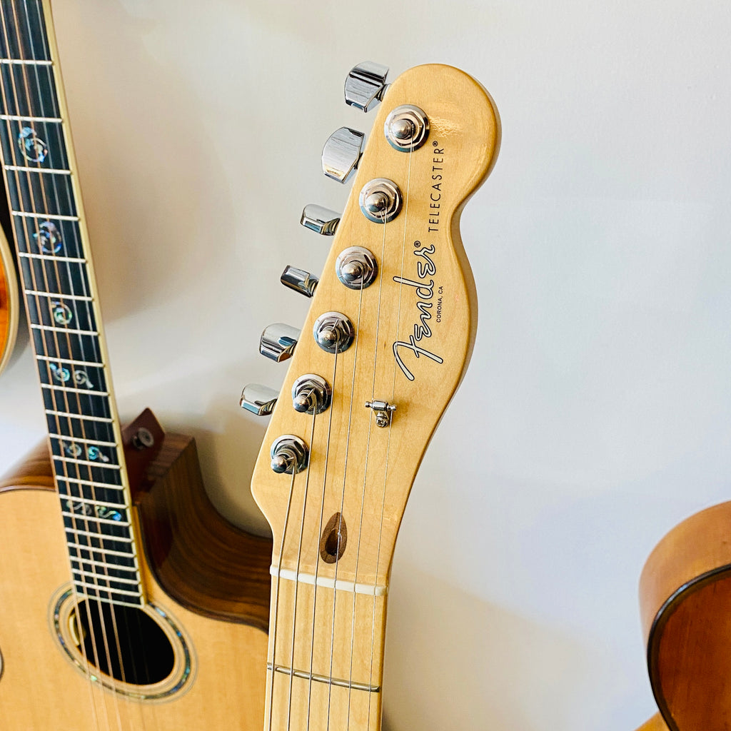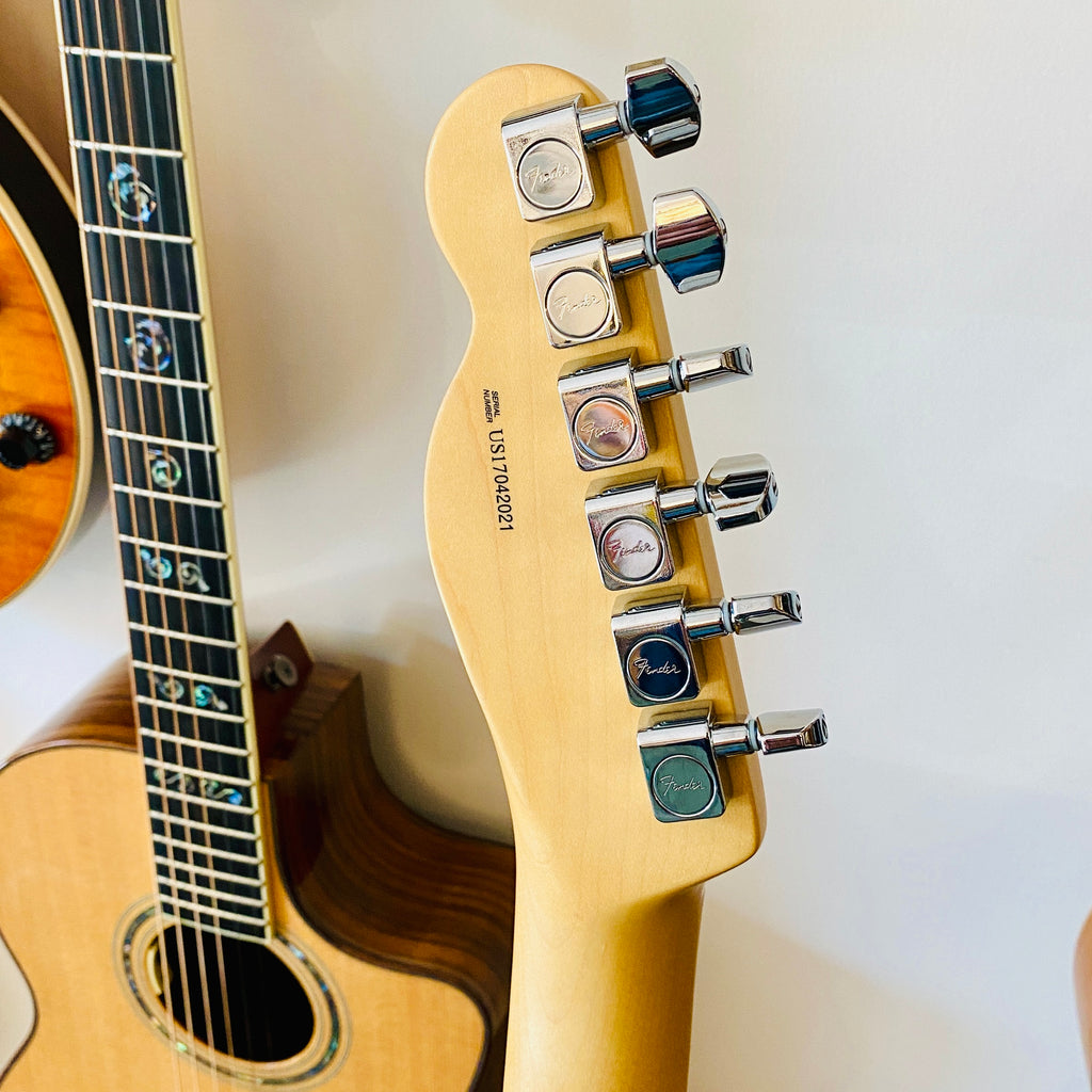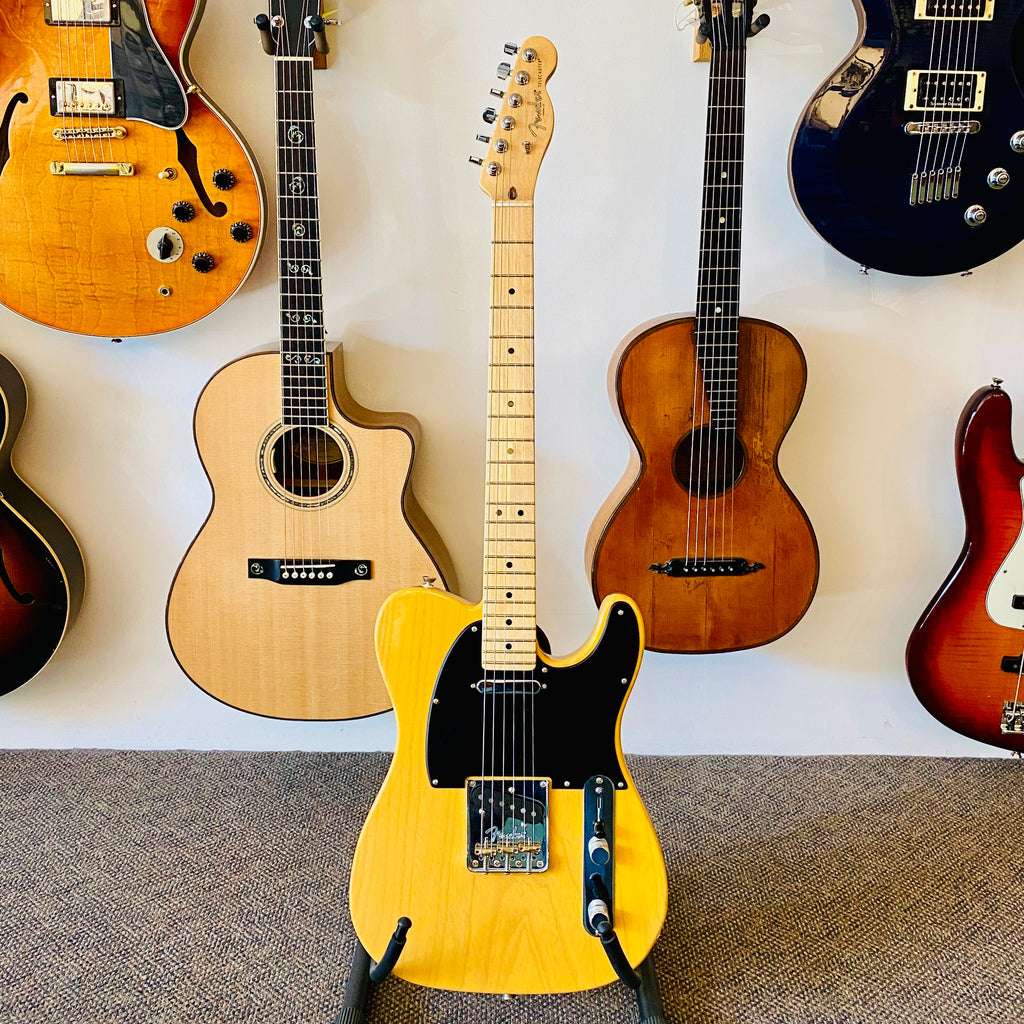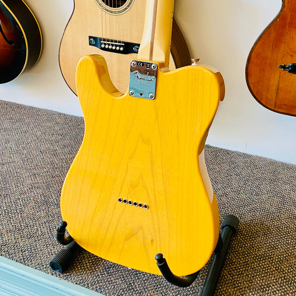 Here is a Fender American Professional Telecaster, from 2021, solidly built, using premium materials and hardware, with a butterscotch polyurethane finish, giving it a warm, classic look.