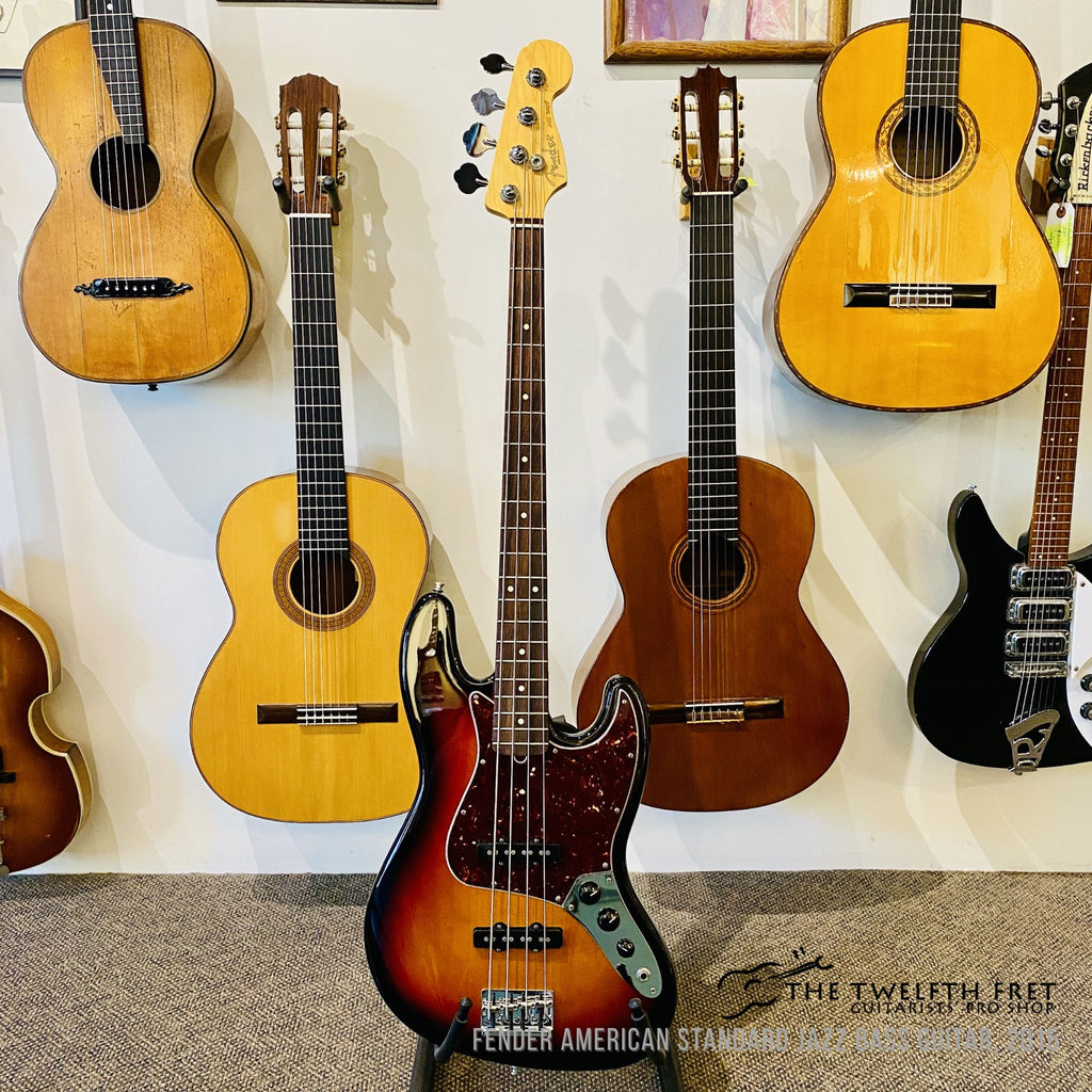 Here is a Fender American Standard Jazz Bass guitar from 2015. The Fender Jazz bass is one of the most iconic and versatile basses heard on countless stages and recordings.
