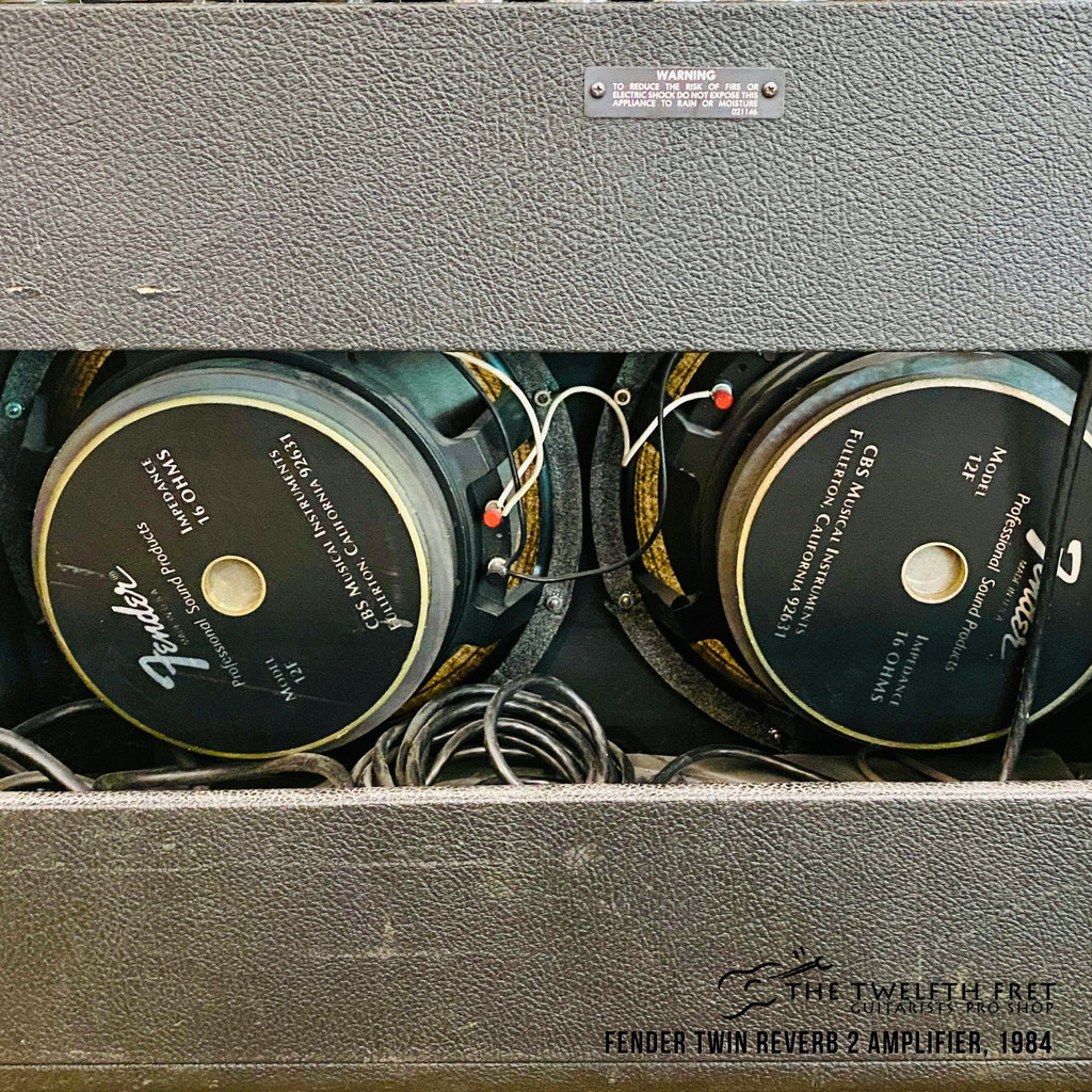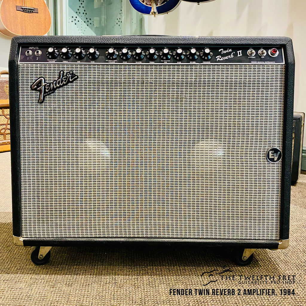 Here is a Fender Twin Reverb 2 Amplifier from 1984. These early 80's Paul Rivera era amps are hand wired and were only made from 83-86. They have dual channels with push pull knobs and put out 85 watts through two Fender 12F speakers.