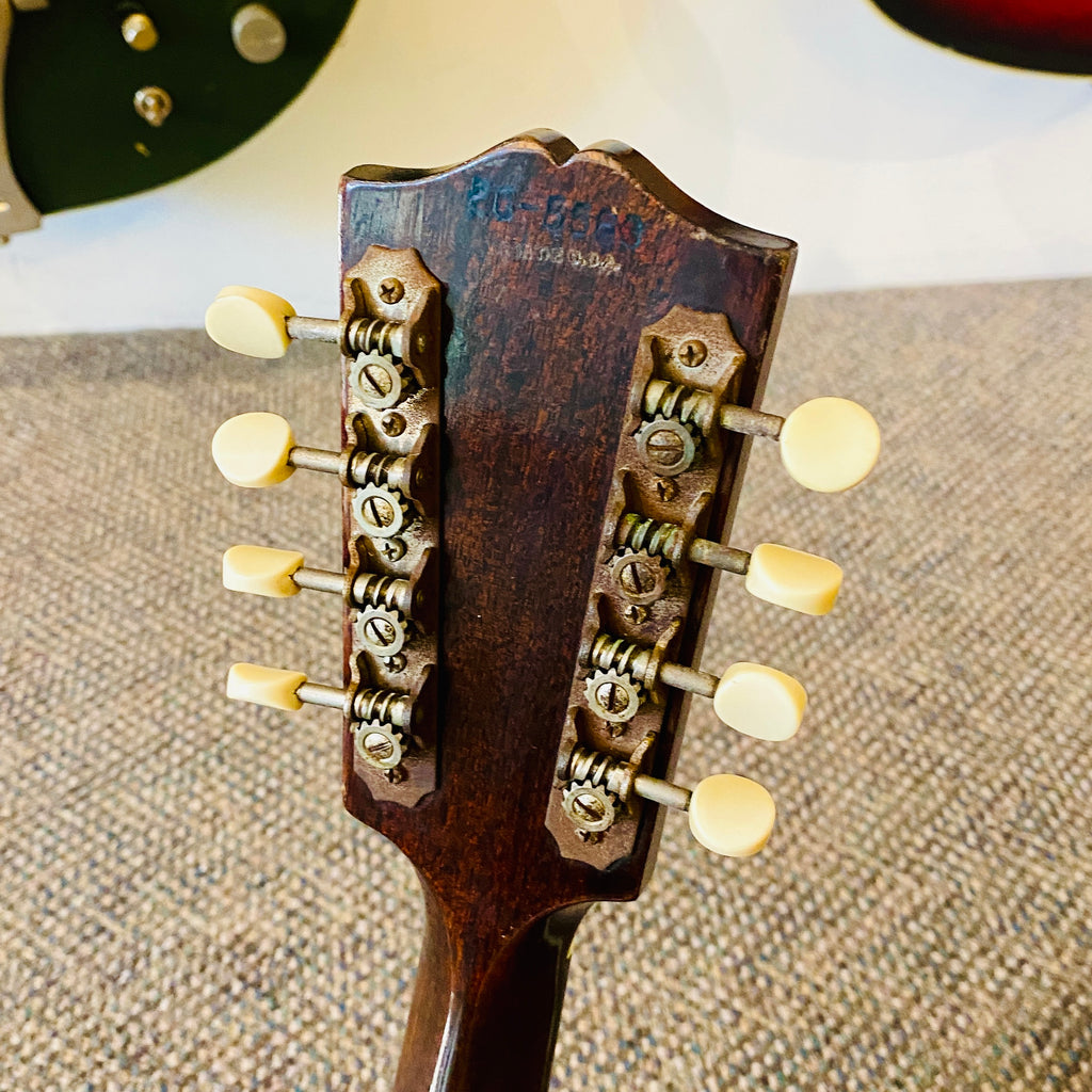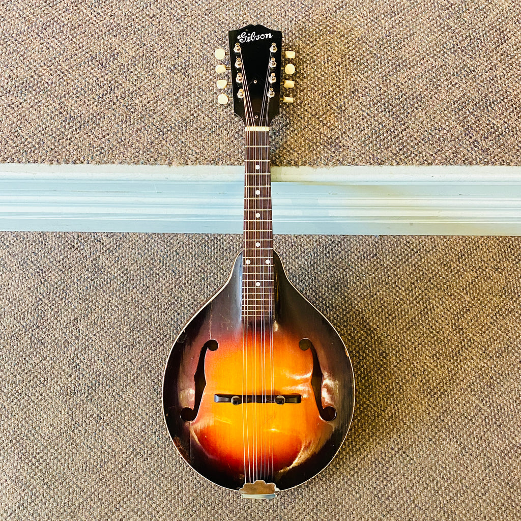 Here is a vintage Gibson A-00 mandolin from 1935, featuring a nitro sunburst finish and classic A-style hollow body construction. Built in the USA during the Depression era, this model was Gibson’s entry-level carved-top mandolin, offering quality craftsmanship at an accessible price.