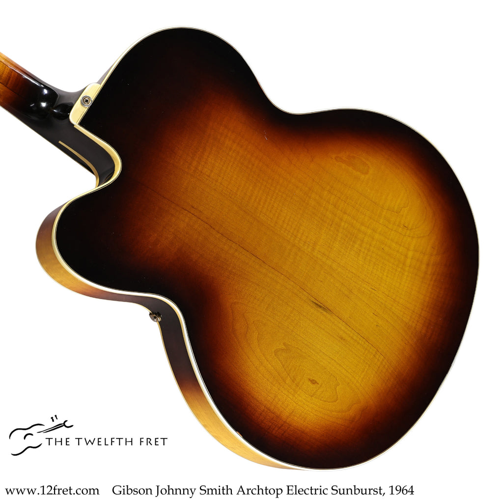 From its introduction, the Johnny Smith was intended as an acoustic/electric, and it carries a mini-humbucking pickup mounted on the bass side of the neck and on the pickguard. The volume control and output jack are also mounted on the pickguard.