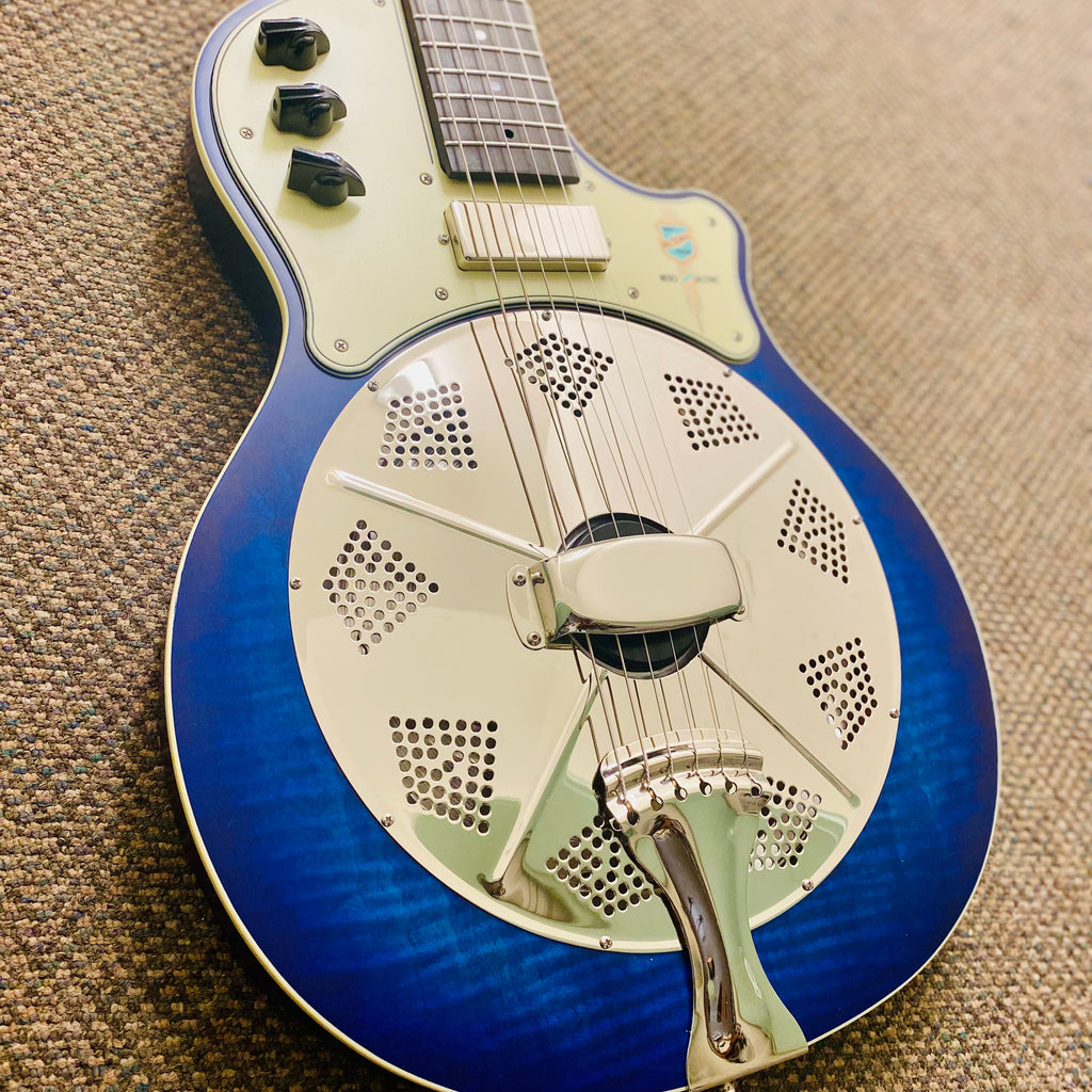 Built in San Luis Obispo California, the National Resolectric Resophonic Guitar blends the Resophonic and Solidbody electric guitar concepts, to great success.