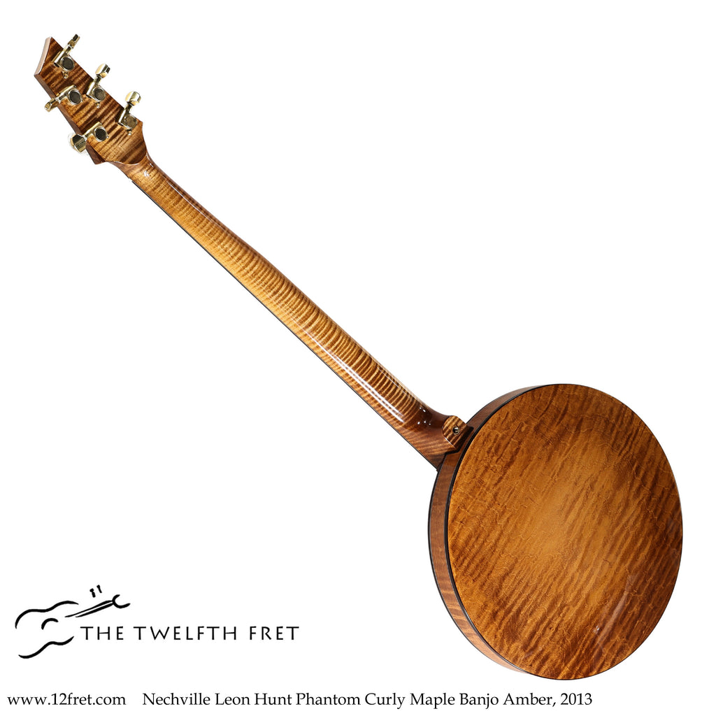 This well preserved example of the Nechville Leon Hunt Phantom Curly Maple Banjo Amber dated 2013, features top grade, highly figured curly maple and cocobolo. Based closely on the banjo made for Leon Hunt and dating to March of 2013, it is in very good condition physical and playing condition with light wear.