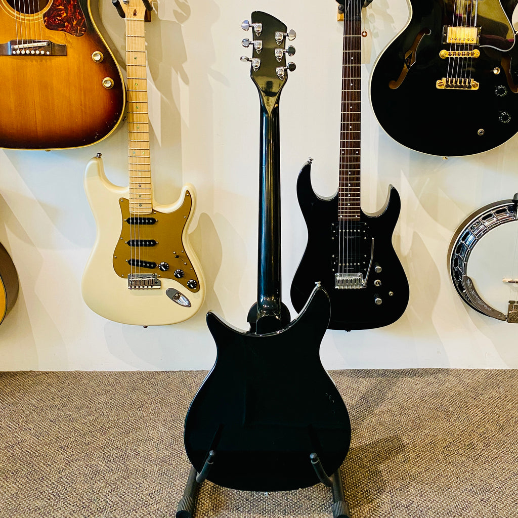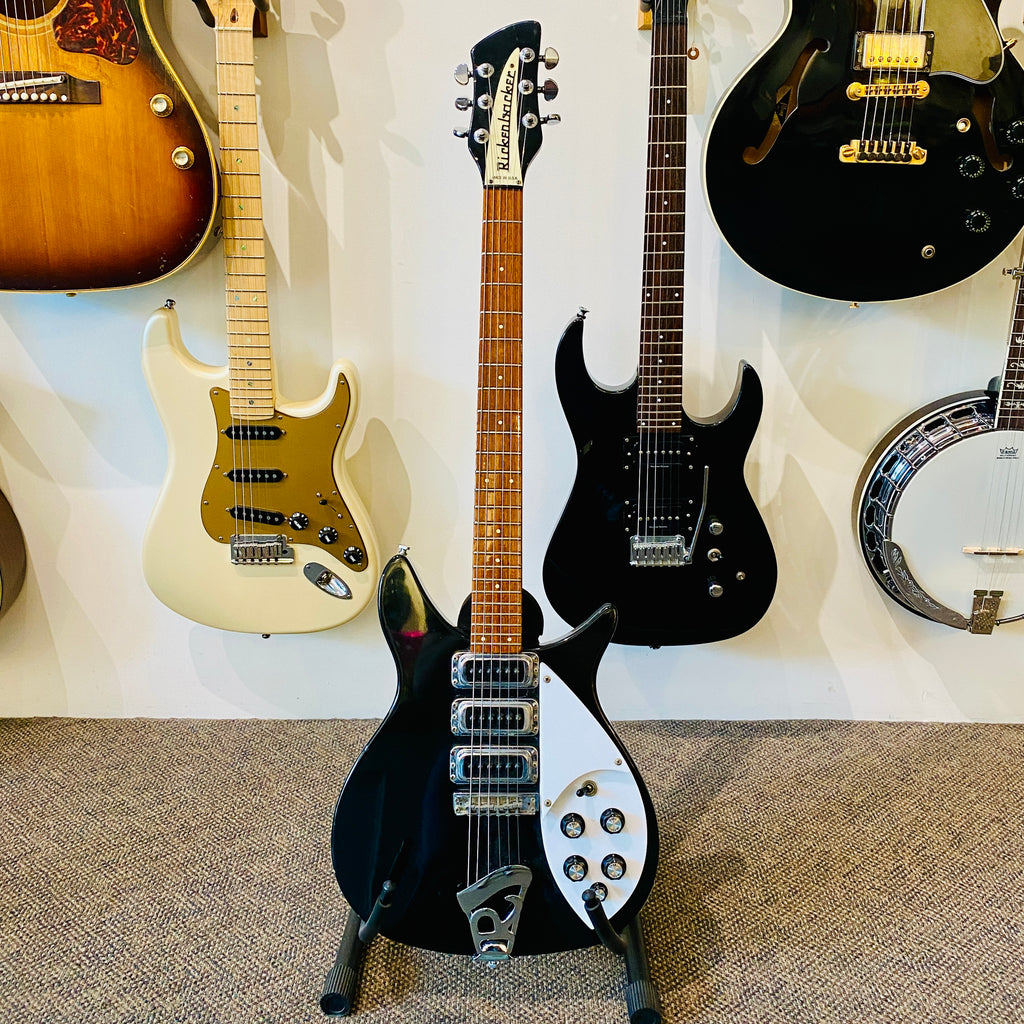 Here is a Rickenbacker 350 Electric Guitar from 1984. This semi-hollowbody in black gloss finish features three high output single coil pickups and has a Pau ferro fingerboard. It is in great overall condition with only very minor play marks.
